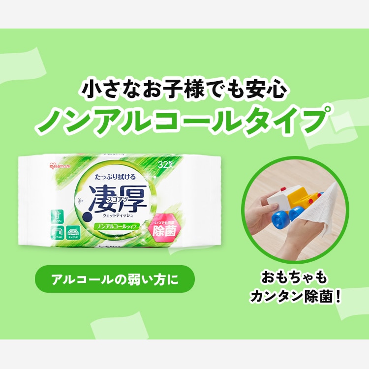 ![[公式]ウェットティッシュ アルコール 厚め エタノール 除菌シート 厚手 乾きにくい 除菌 持ち運び 凄厚ウェットティッシュ 32枚入り アイリスオーヤマ WTP-32A1P アルコールタイプ](/img/0119/goods/D8/0119-298671.jpg)