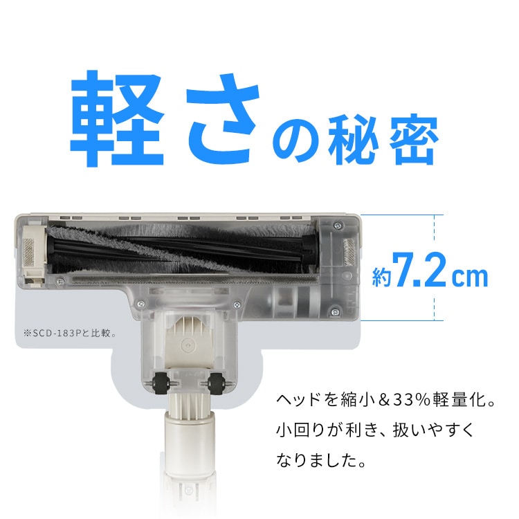 (※1:アイリスオーヤマ充電式スティッククリーナーにおいて。2023年12月現在。/※2:SCD-184Pと比較。)