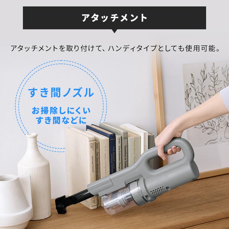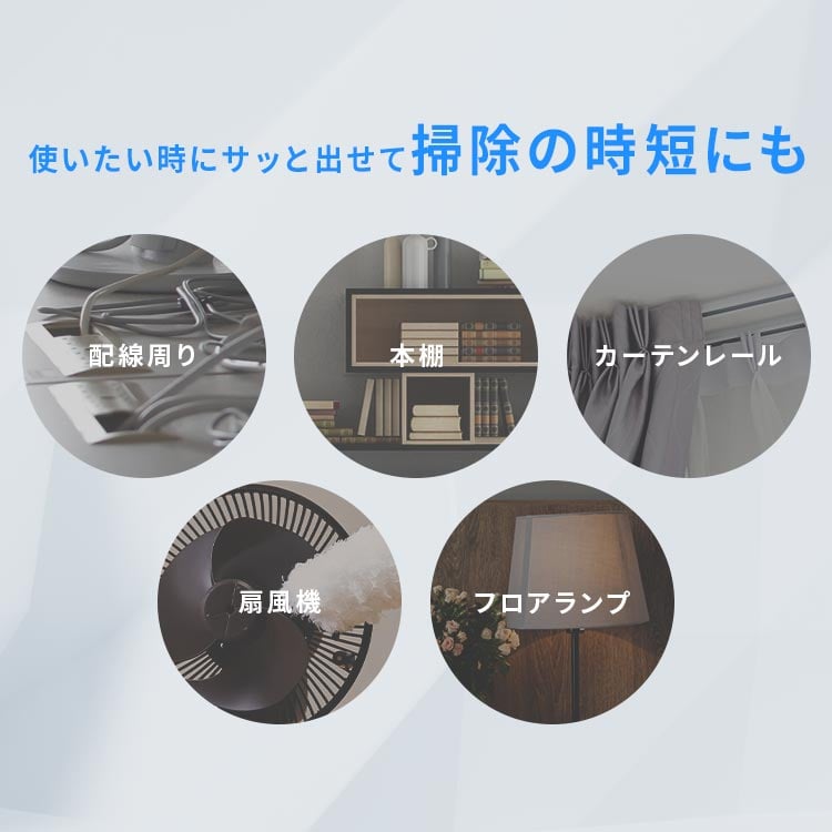 家具の隙間やなどもラクラクきれい&掃除途中の「ついで掃除」にも便利。