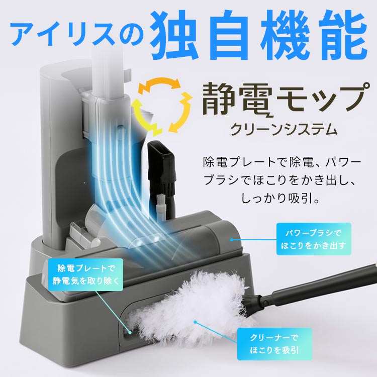 【アイリスの独自機能:静電モップクリーンシステム】