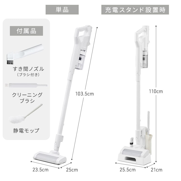 充電アダプター、充電スタンド、静電モップ、モップ帯電ケース、すき間ノズル、クリーニングブラシ