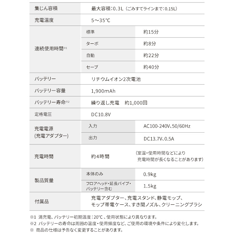 フロアヘッド、延長パイプ、バッテリー含む:約1.5kg