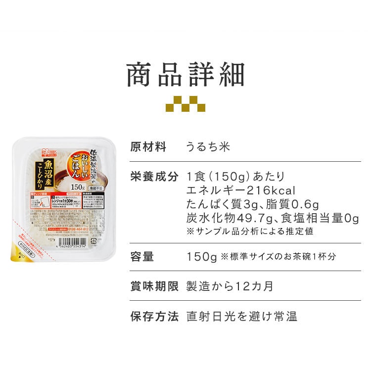 ![[公式] パックご飯 魚沼産こしひかり 150g×24パック アイリスオーヤマ](/img/0119/goods/4/0119-310337.jpg)