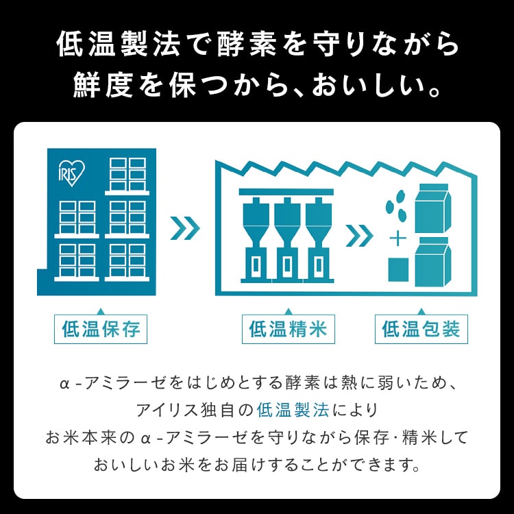 国産米を100%使用し、お米の旨みと甘みを守る精米方法「低温製法」で保管・精米しました。