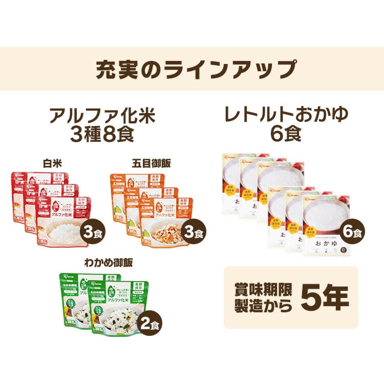 ![[公式]非常食セット 防災食 アルファ米 3種8食 おかゆ 6食 アイリスオーヤマ](/img/0119/goods/D5/0119-312075.jpg)