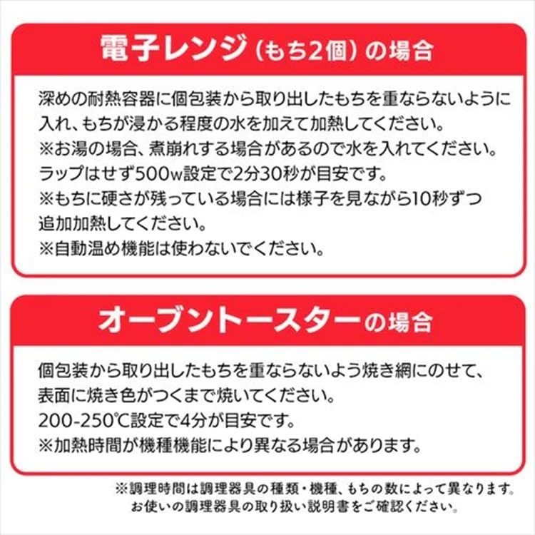 ※調理時間は調理器具の種類・機種、もちの数によって異なります。