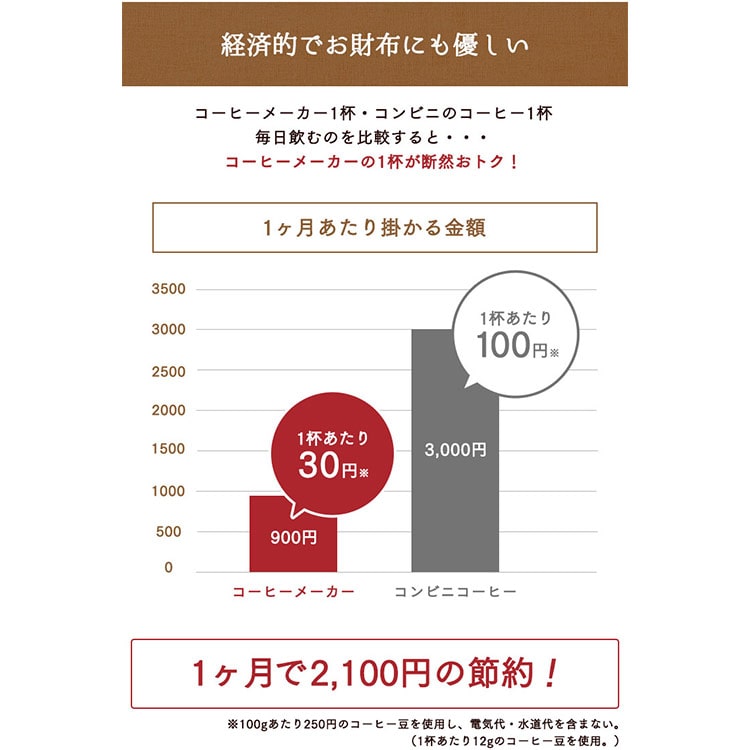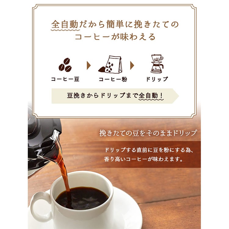 豆挽きからドリップまですべて全自動で行い、いつでも挽きたてのコーヒーが楽しめます。