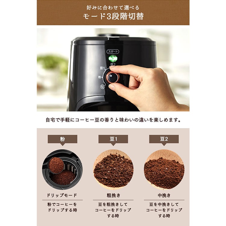 コーヒーや挽き方の種類に合わせて、3つのモードから選択できます。