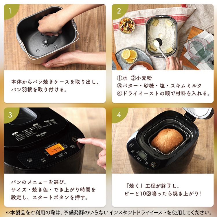 ※本製品をご利用の際は、予備発酵のいらないインスタントドライイーストを使用してください。