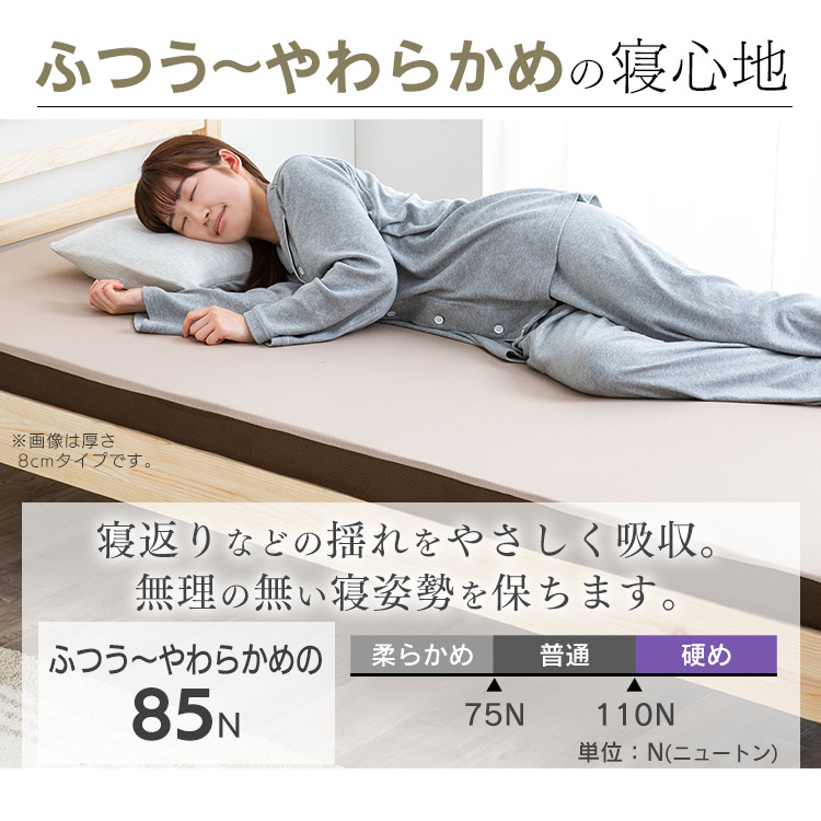 じんわり包み込む感触で体にフィットし、寝返りなどの揺れをやさしく吸収。