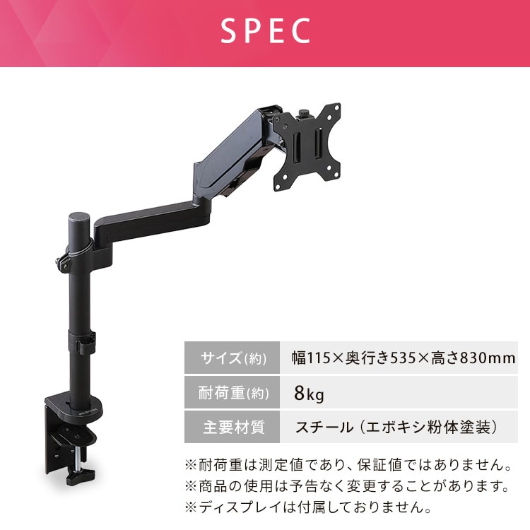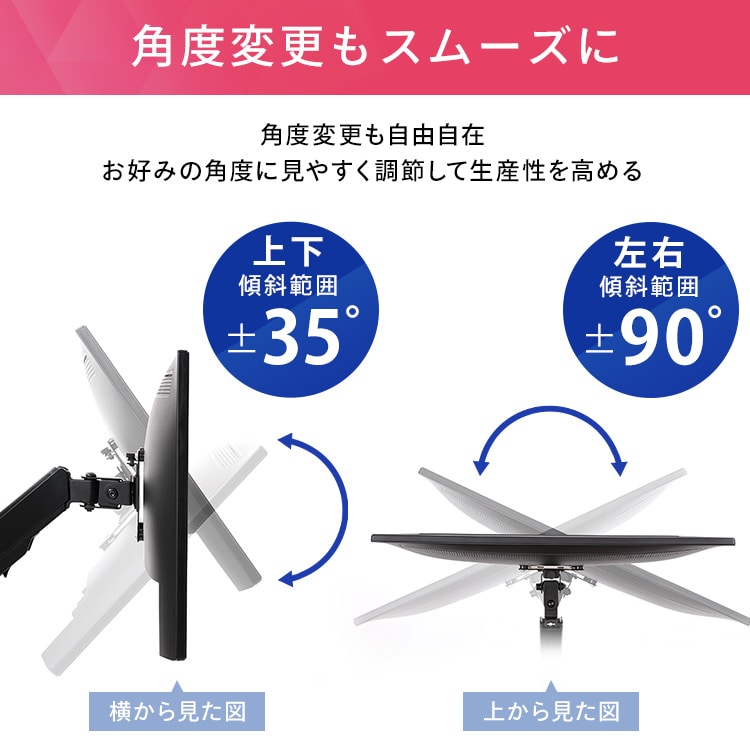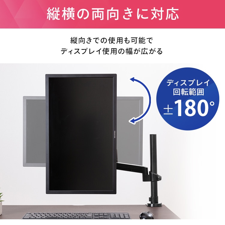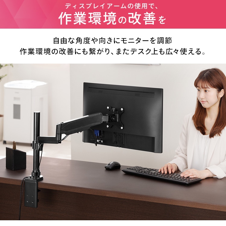 ディスプレイをデスクにしっかり固定できるディスプレイアームです。