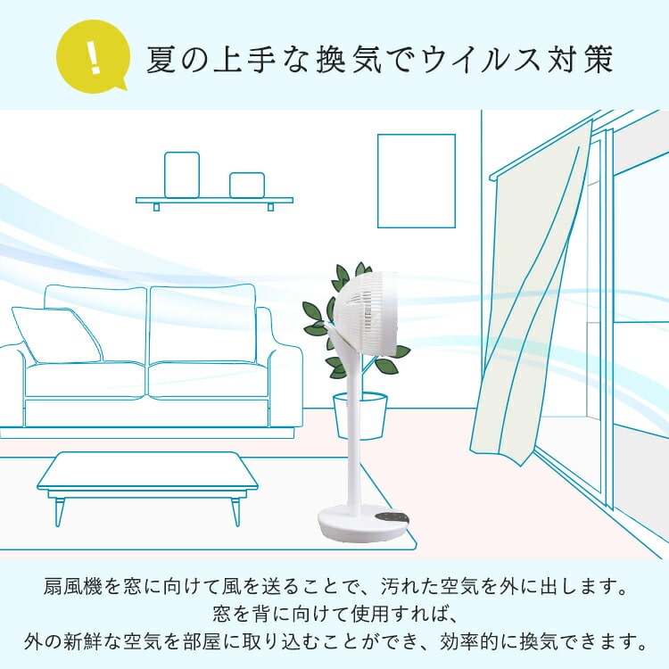 扇風機としてだけでなく、空気循環や衣類乾燥にも便利。