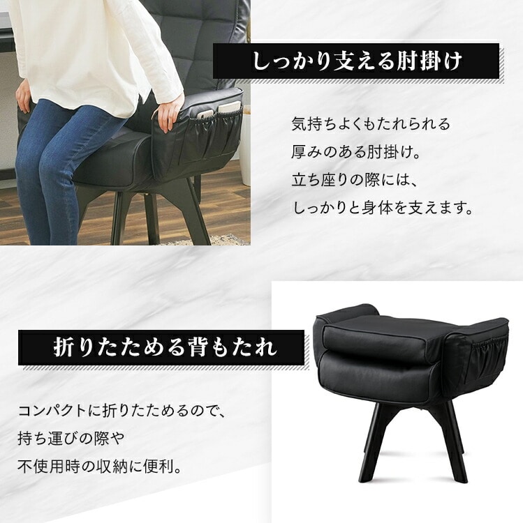 回転するので、立ち座りする方向に椅子を向けられて便利。