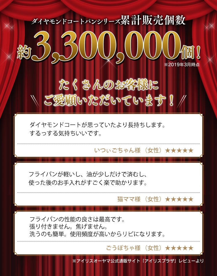 ダイヤモンドコーティング採用でこびりつきにくく、丈夫で長持ち。