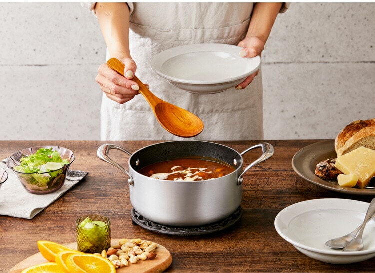 ステンレスの持ち手で雰囲気をぐっと引き締めます。