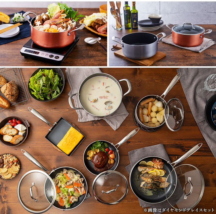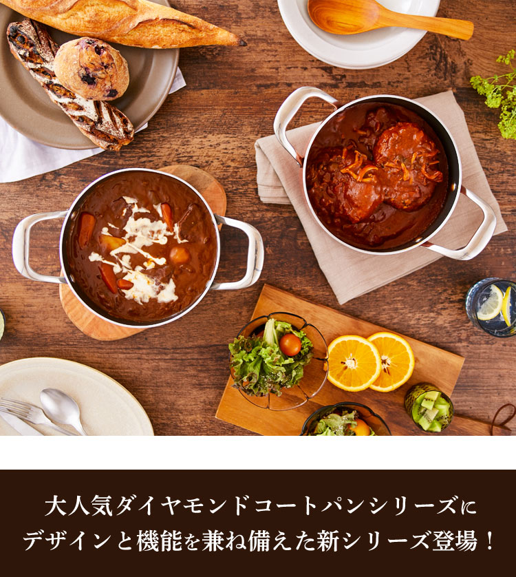 ダイヤモンドコーティング採用でこびりつきにくく、丈夫で長持ち。
