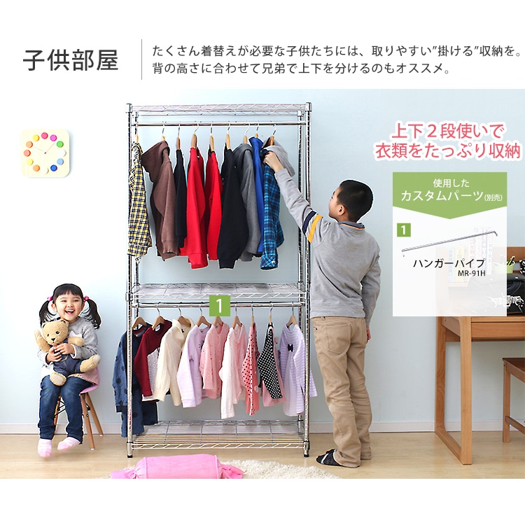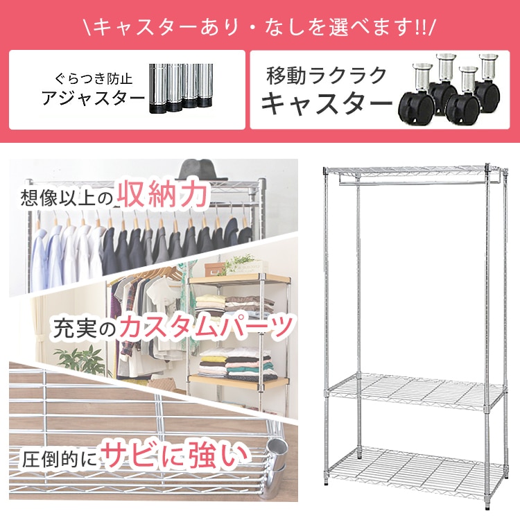 棚板・ポール・ハンガーパイプ:スチール(クロームメッキ)