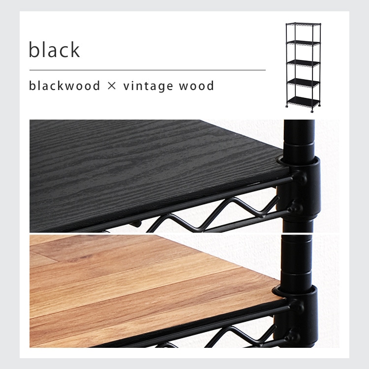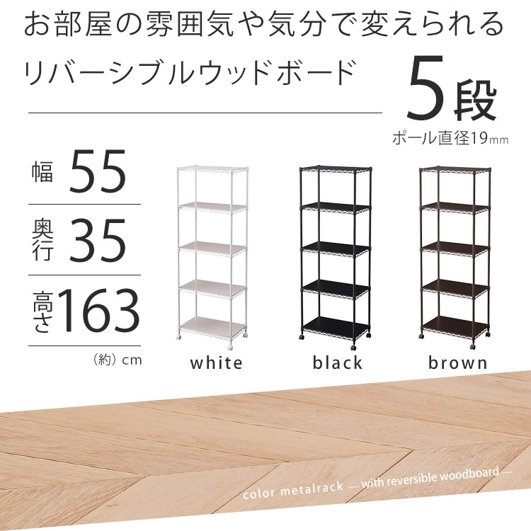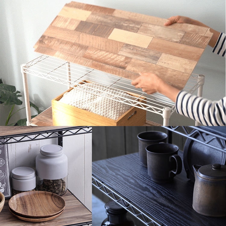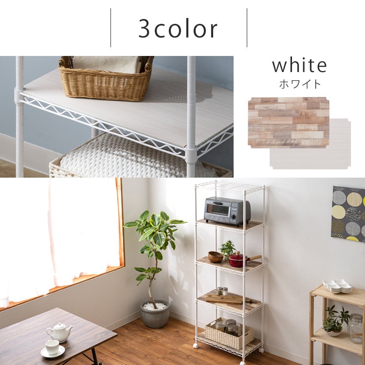 お部屋の雰囲気に合わせて選べる「リバーシブルウッドボート付き」マットカラーのメタルラック。
