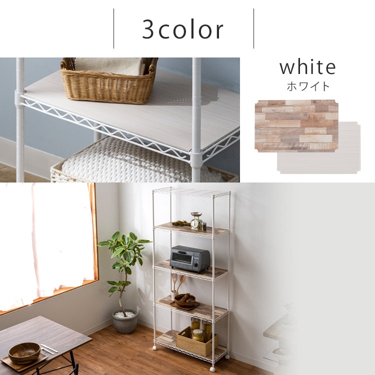 お部屋の雰囲気に合わせて選べる「リバーシブルウッドボート付き」マットカラーのメタルラック。