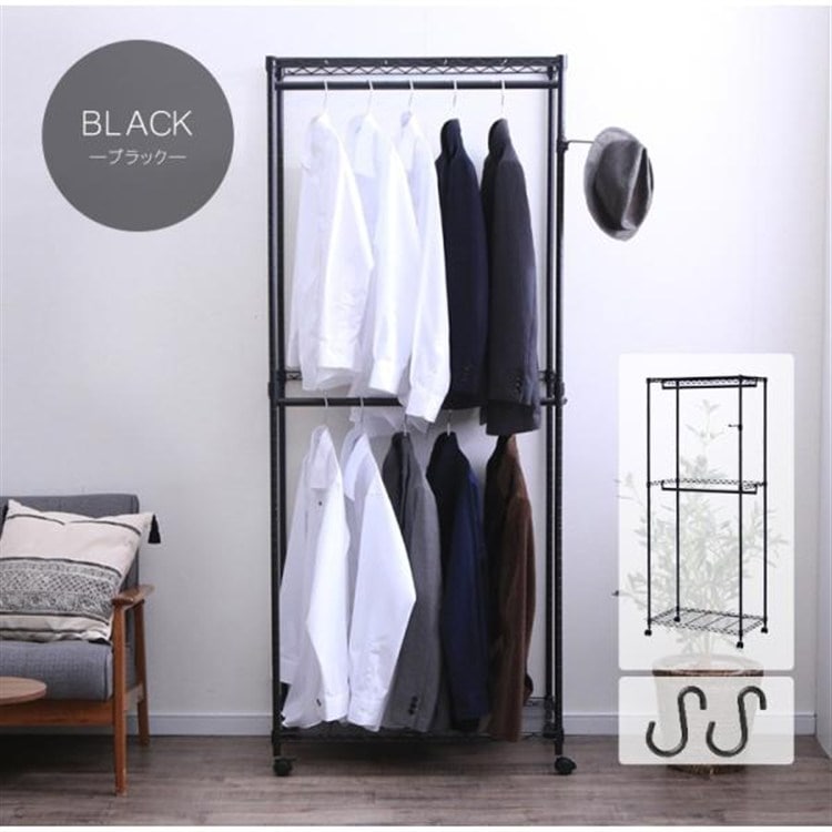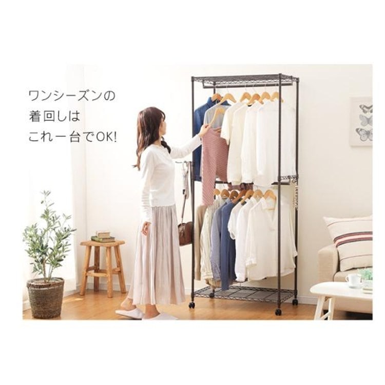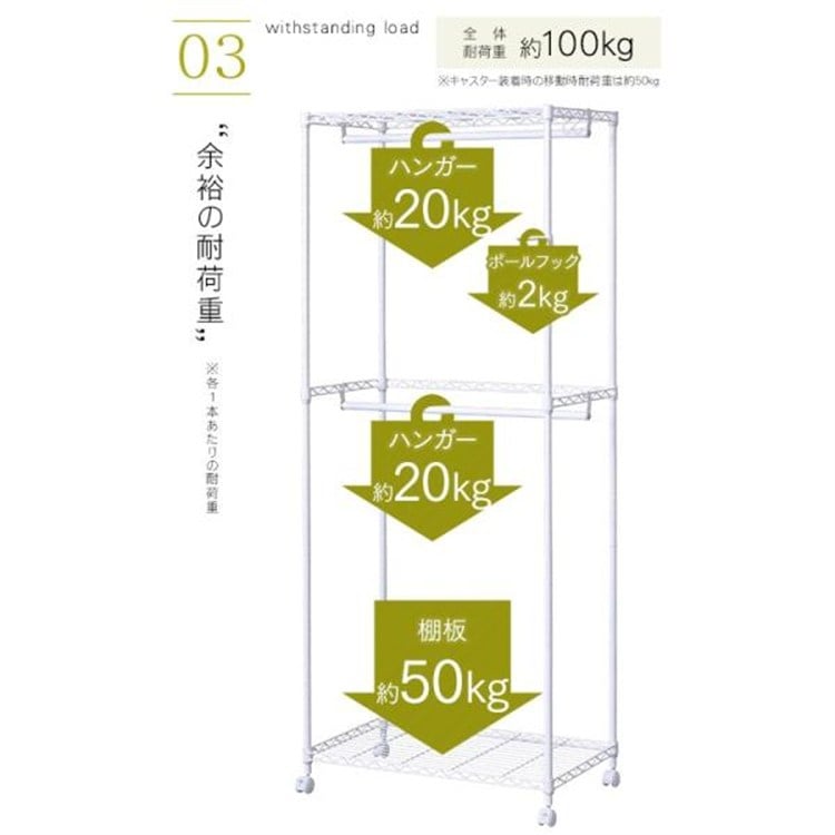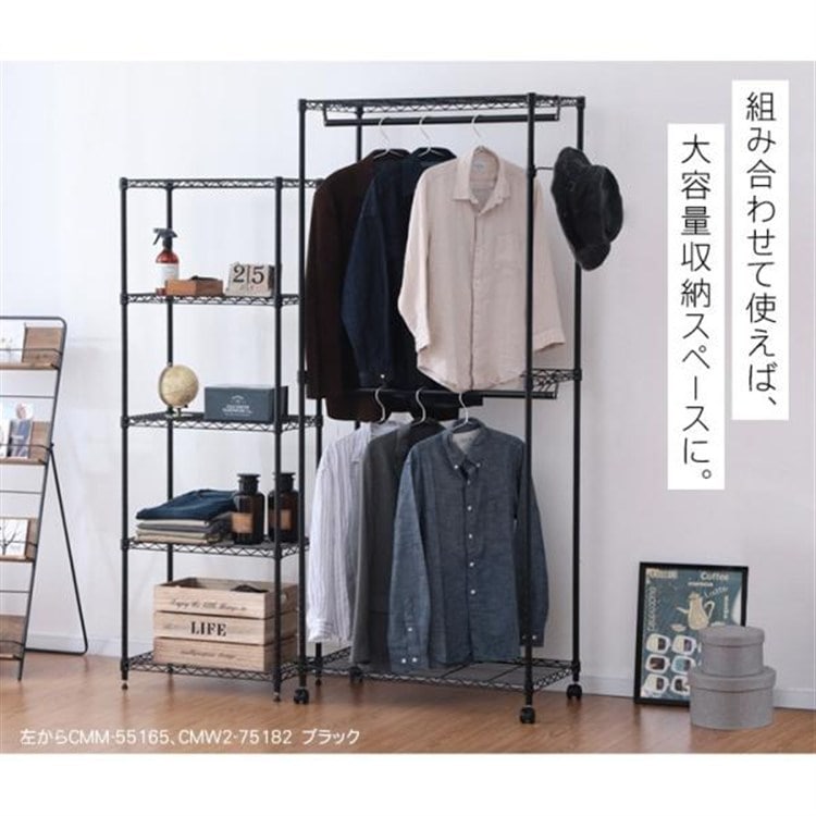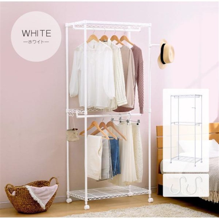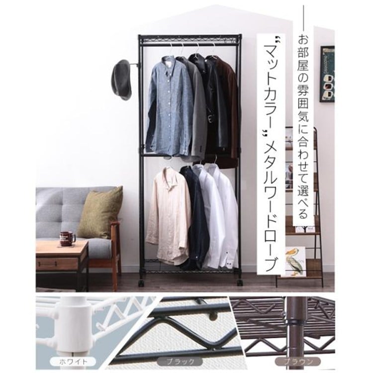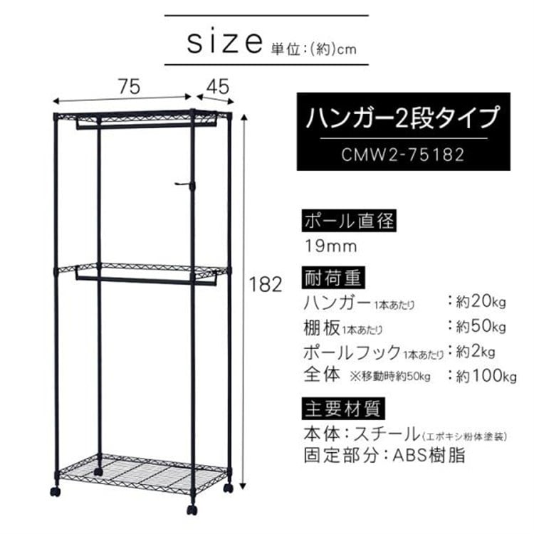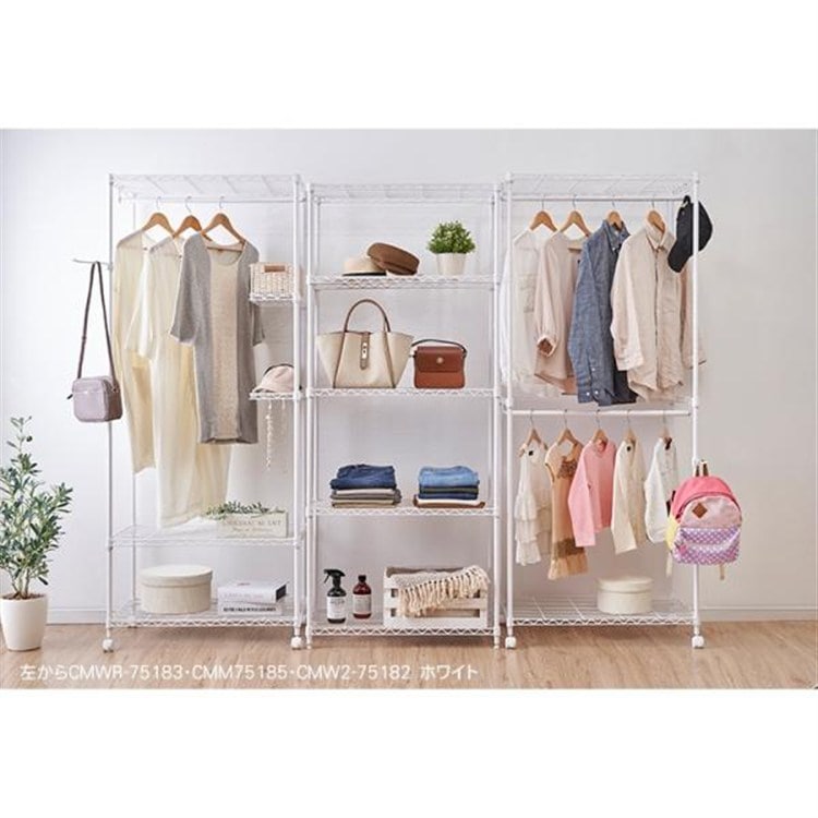 [幅75cm]カラーメタル ワードローブ 2段タイプ CMW2-75182 ホワイト