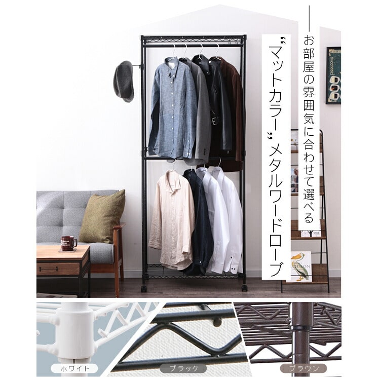 [マイル5倍!12/7迄][幅75cm]カラーメタル ワードローブ 2段タイプ CMW2-75182 ブラウン