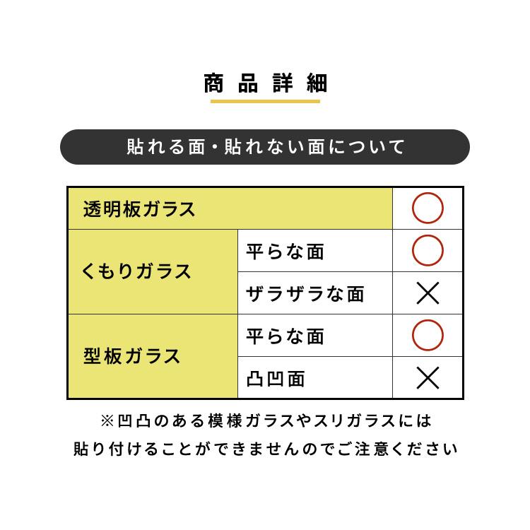 ●貼れる面:透明板ガラス、平らなくもりガラス、平らな型板ガラス