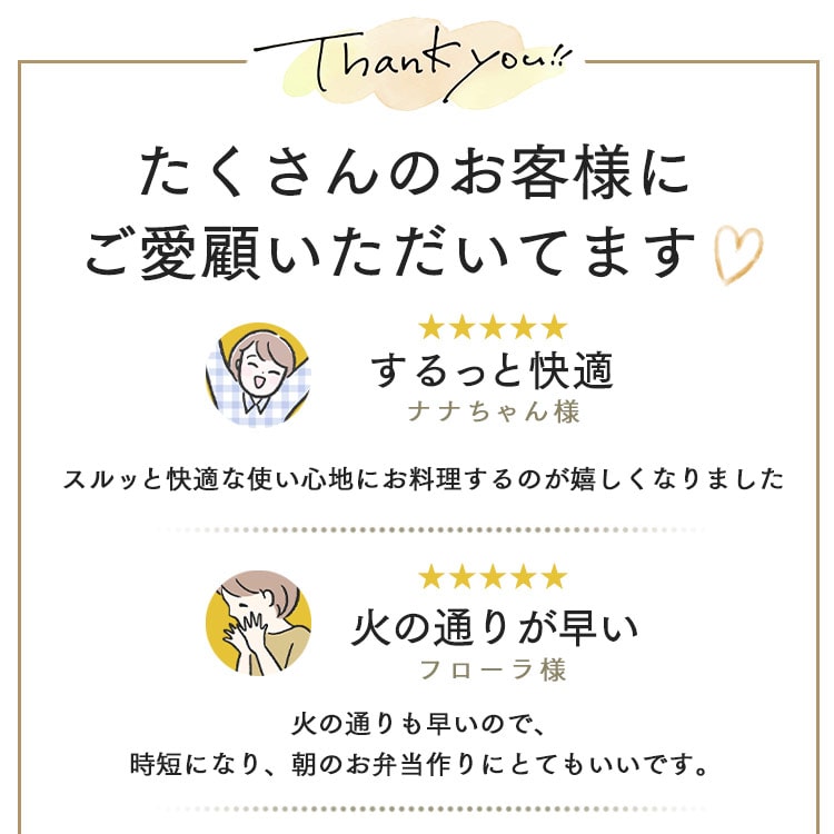 フッ素樹脂の中に人工ダイヤモンドの粉をまぶした「ダイヤモンドコーティング」を施してありますので、こびりつきを防ぐコーティングが長持ちします。