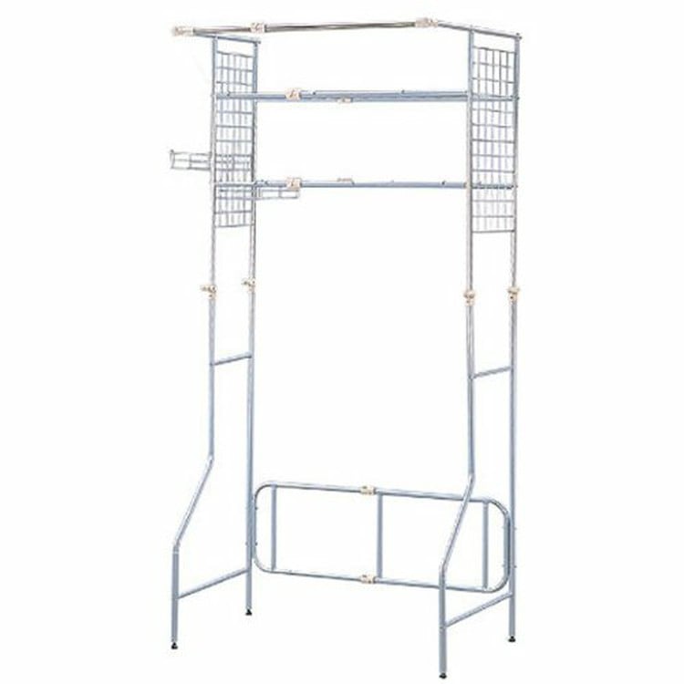 上部のバーに洗濯物を仮干ししたり、棚に洗濯機周りの小物を収納したりできる多機能ランドリーラックです。ハンガーバー部分はサビにくいステンレス製なので水まわりでの使用も安心です。縦横に伸縮するタイプです。★お客様組立★●商品サイズ(cm):幅約66~97×奥行約61.0×高さ約173.5~188.5