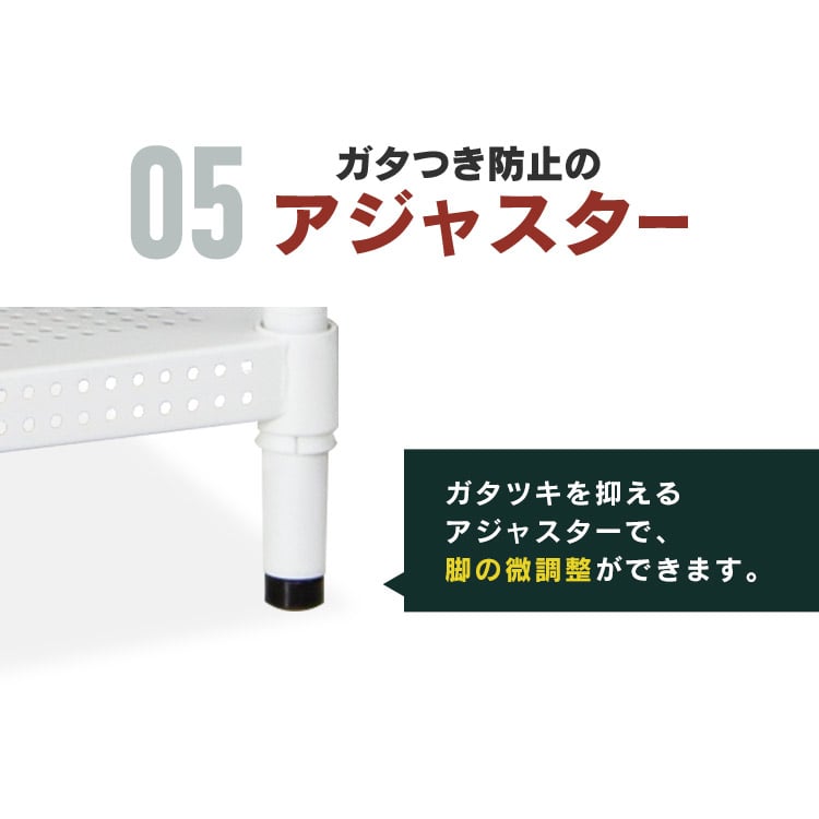 パンチング穴が通常メタルラック棚板の穴より小さいため、小物などが落下しにくくなっています。