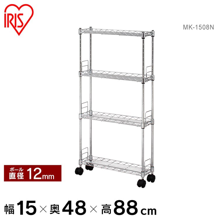 冷蔵庫とシンクの間、コンロと壁の間などにできる隙間を上手に活用することのできるメタルスリムです。