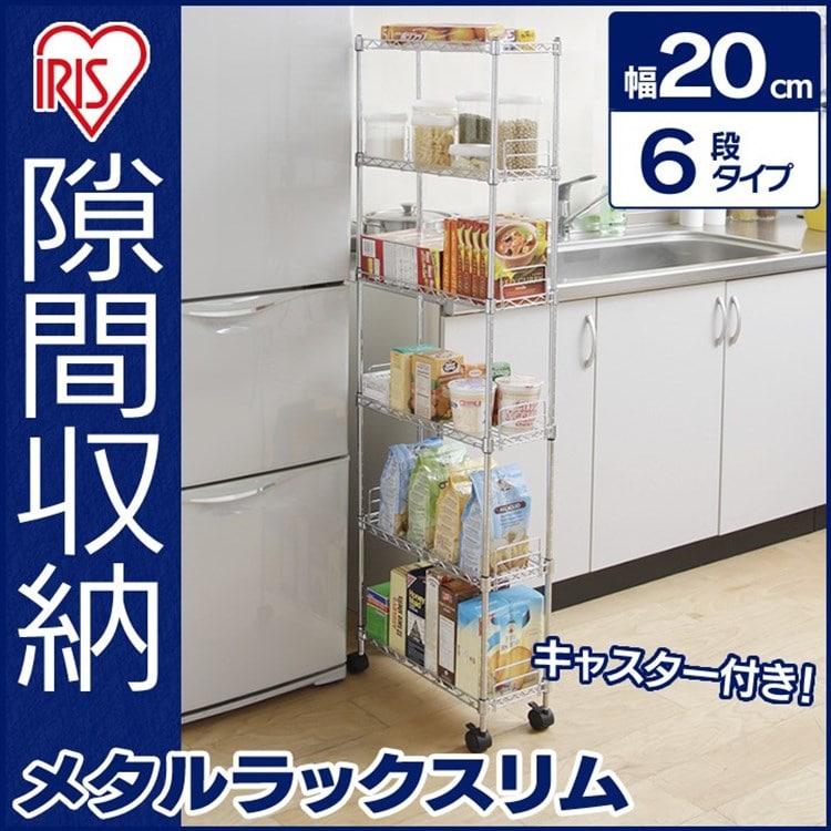 冷蔵庫とシンクの間、コンロと壁の間などにできる隙間を上手に活用することのできるメタルスリムです。