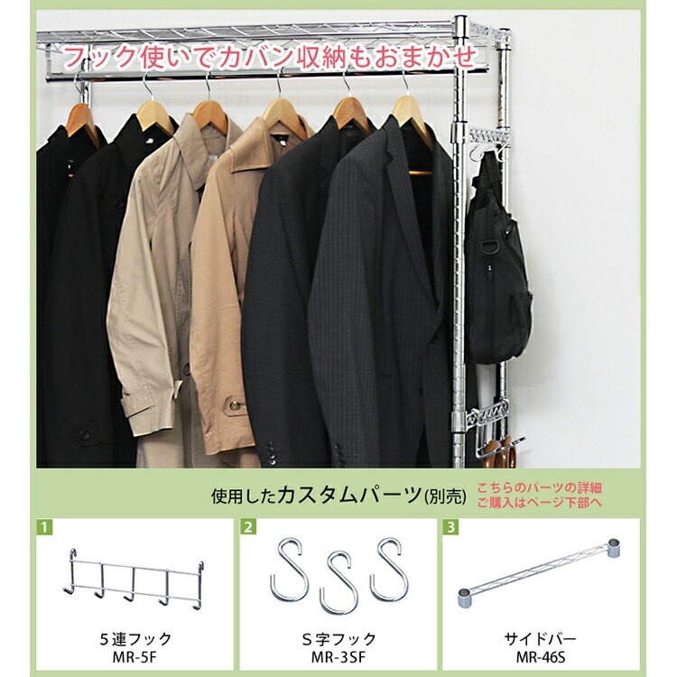 棚板が付いていますのでちょっとした衣類小物やバック・帽子等を一緒に収納できます。