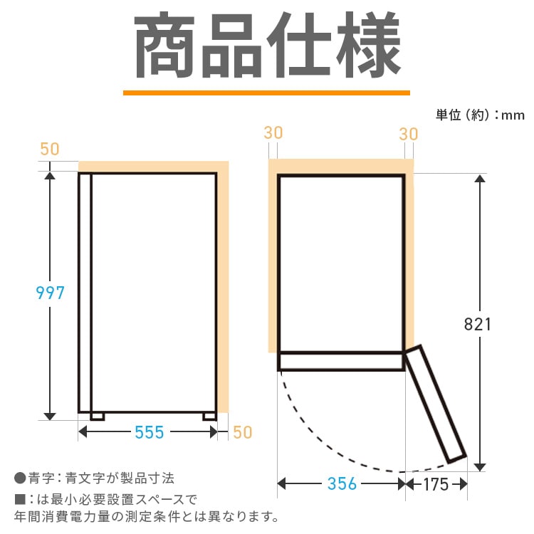 ※定格容積は日本産業規格(JIS C 9801-3:2015)に基づき、庫内の温度制御に必要でない部品(ケースなど)をはずした状態で算出しています。