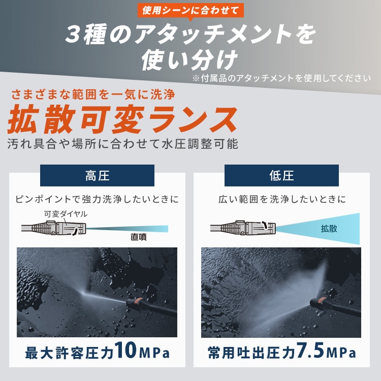 ※1 水道接続・拡散可変ランス使用時