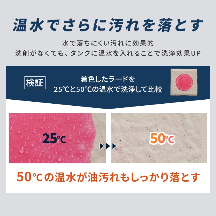 洗剤がなくても、タンクに温水を入れることで洗浄効果UP。