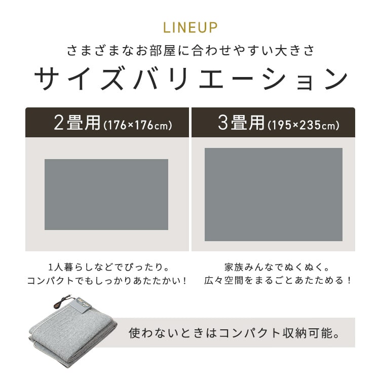 ![[マイル5倍!12/7迄]ホットカーペット 2畳 176×176 温度調節無段階 HCM-T1818 省エネ室温センサー グレー 単品](/img/0119/goods/D2/0119-572376.jpg)