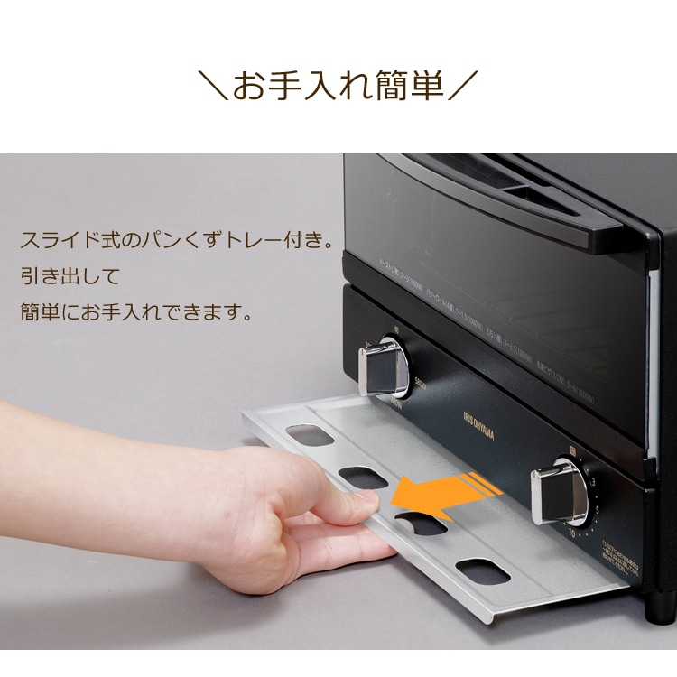 スライド式のパンくずトレー付きで、引き出して簡単にお手入れできます。