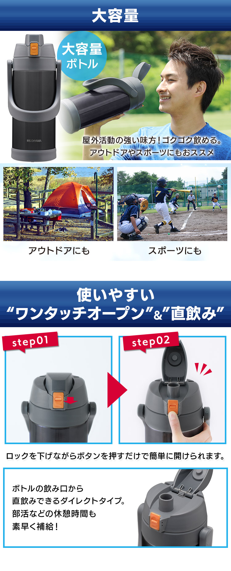 スポーツやアウトドアに最適な2Lのスポーツジャグです。