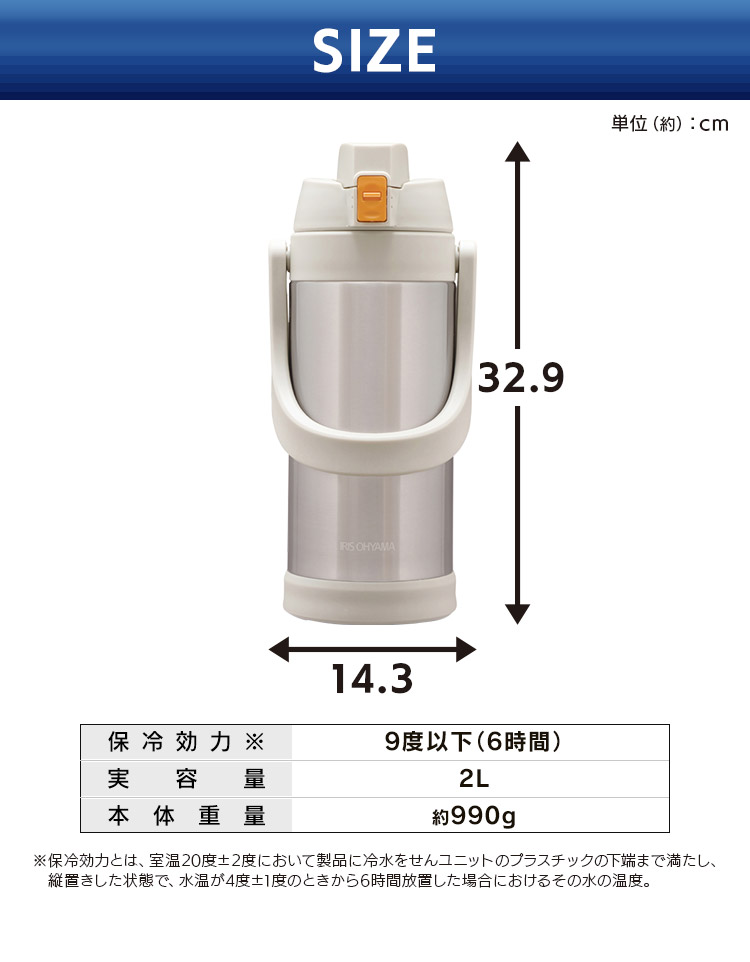 真空二重構造のため、冷たさを保ち、たっぷりの飲み物を保冷できます。