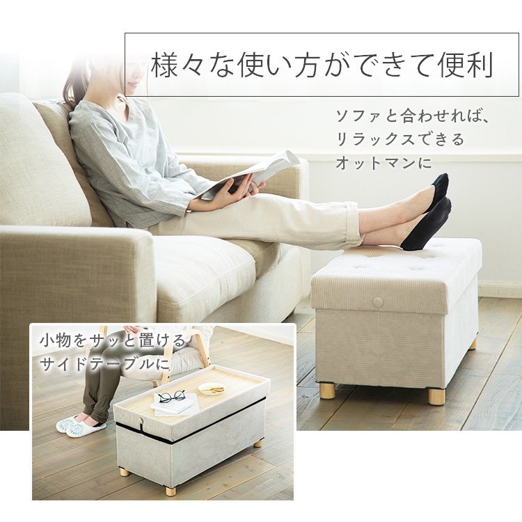 座る、小物の収納、オットマンとしても使える多機能スツールです。