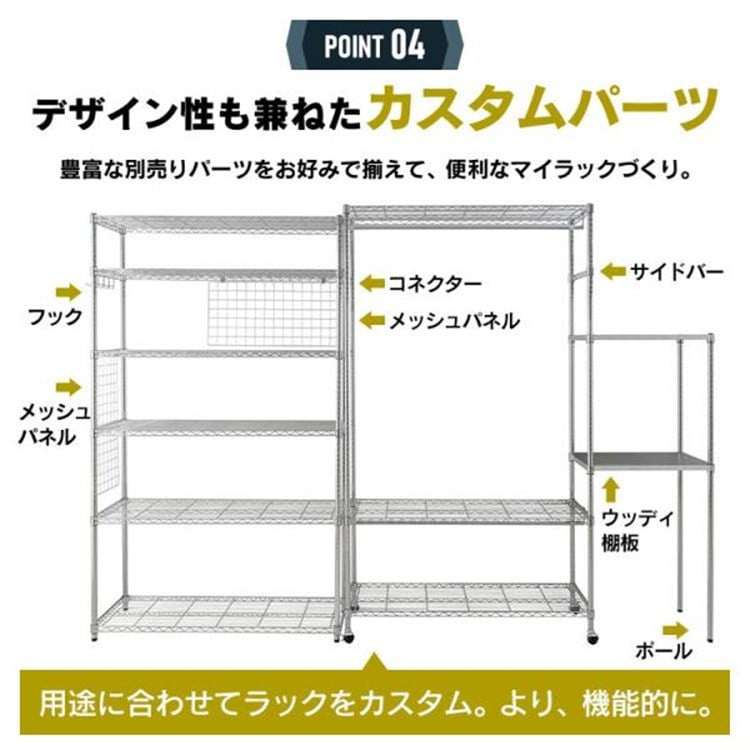 豊富な別売りパーツをお好みで揃えて、便利なマイラックづくり。