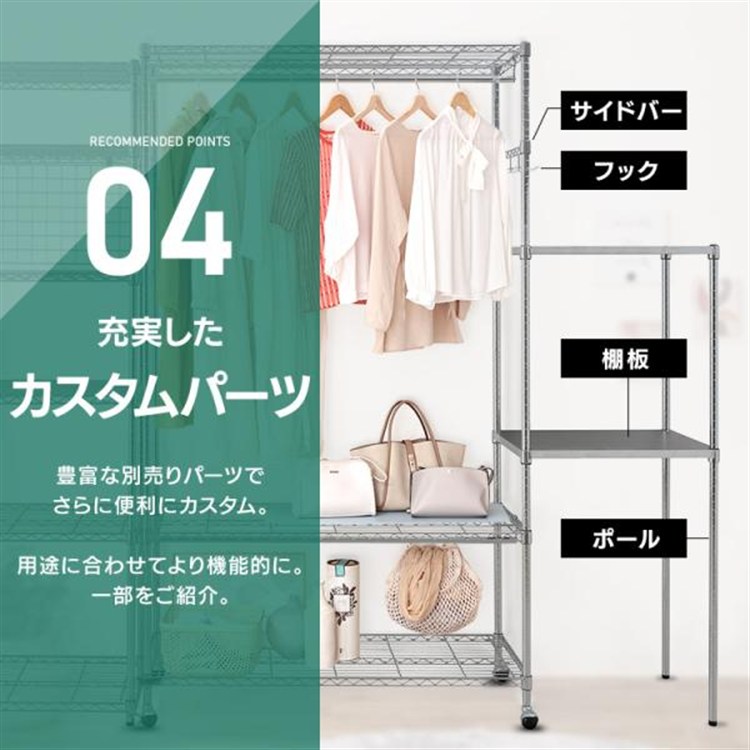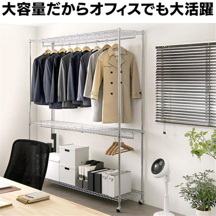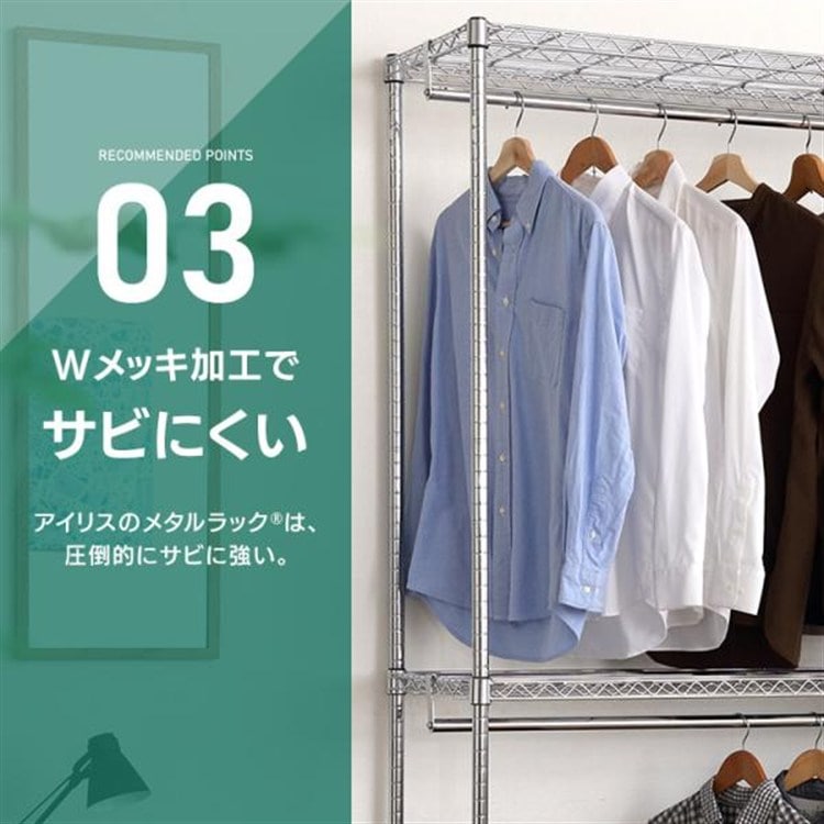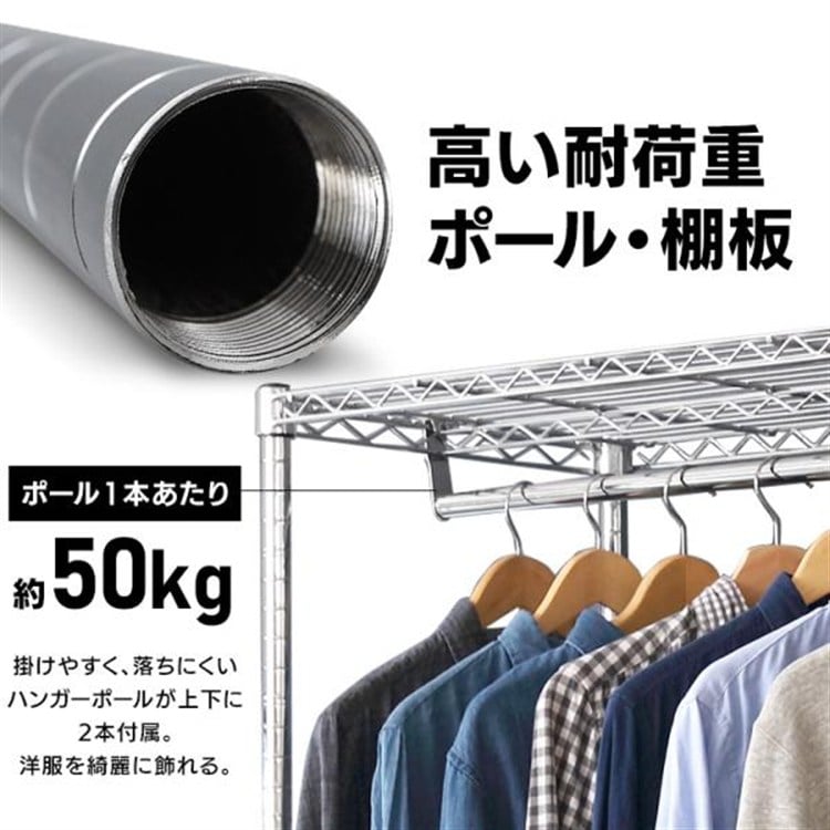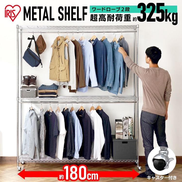[幅180cm]メタルシェルフ ワードローブ2段タイプ SEW2-1821BC シルバー