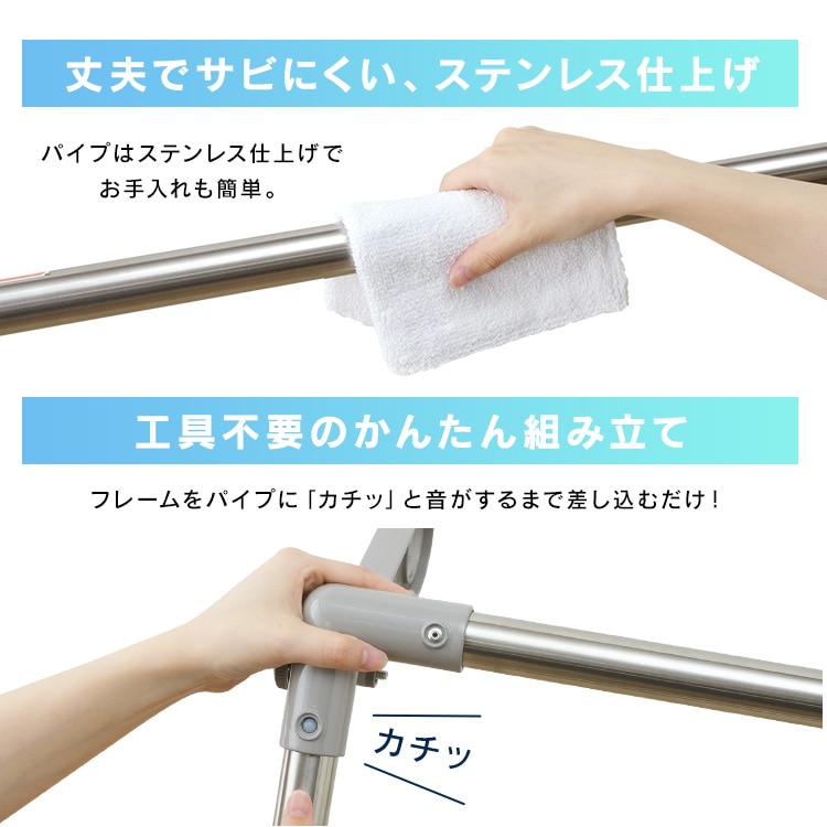 フレームをパイプに「カチッ」と音がするまで差し込むだけ!