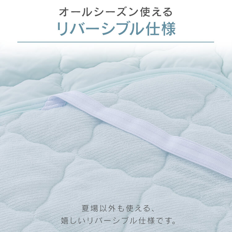 ひんやり冷感素材の表生地と裏面生地には肌触り重視の方用に吸湿速乾繊維ルクールを織り込んだシンカーパイル生地を使用したリバーシブルタイプの快適冷感敷パッドシーツの登場です!