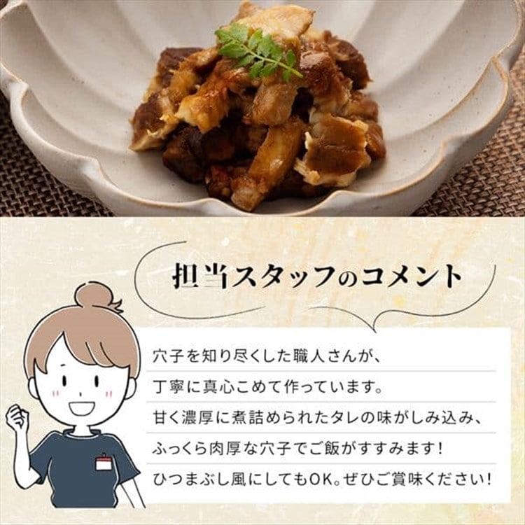 肉厚が自慢の伊達あなご(気仙沼産活〆真穴子)のみを使用して、手作り無添加で作りました。