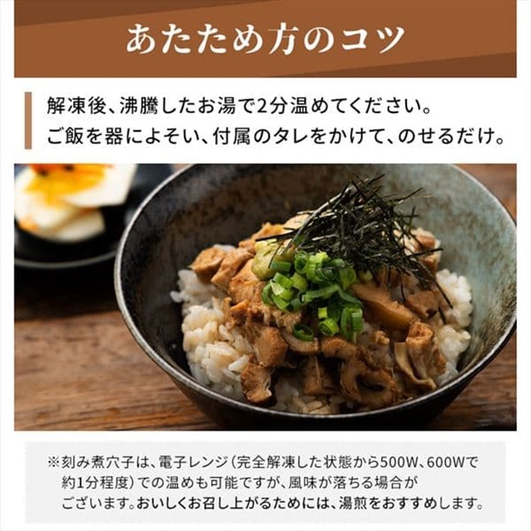 刻み穴子と付属の自家製タレをご飯に混ぜれば簡単にひつまぶしの出来上がり。