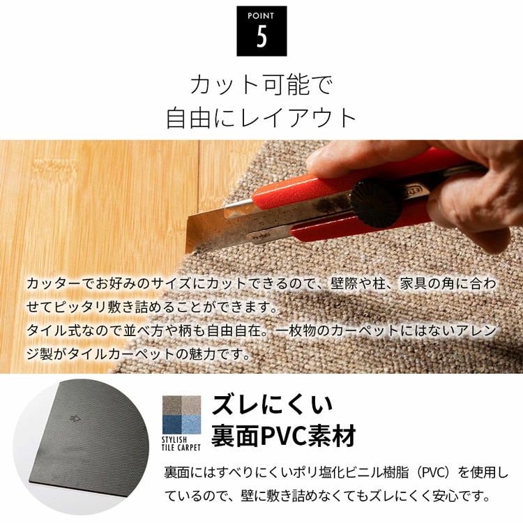 組み合わせが自由なタイルカーペットです。