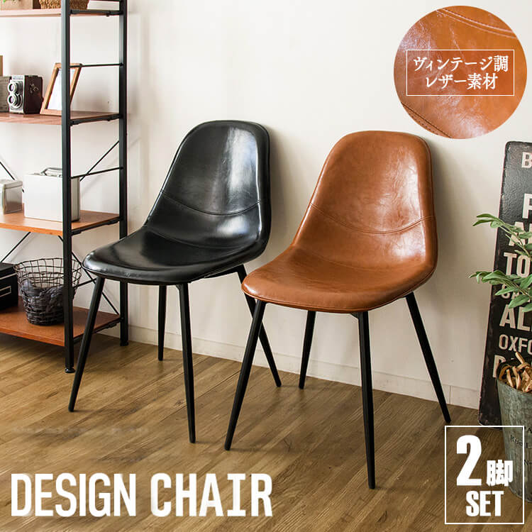 [マイル5倍!12/7迄]デザインチェア2脚セット ブラック