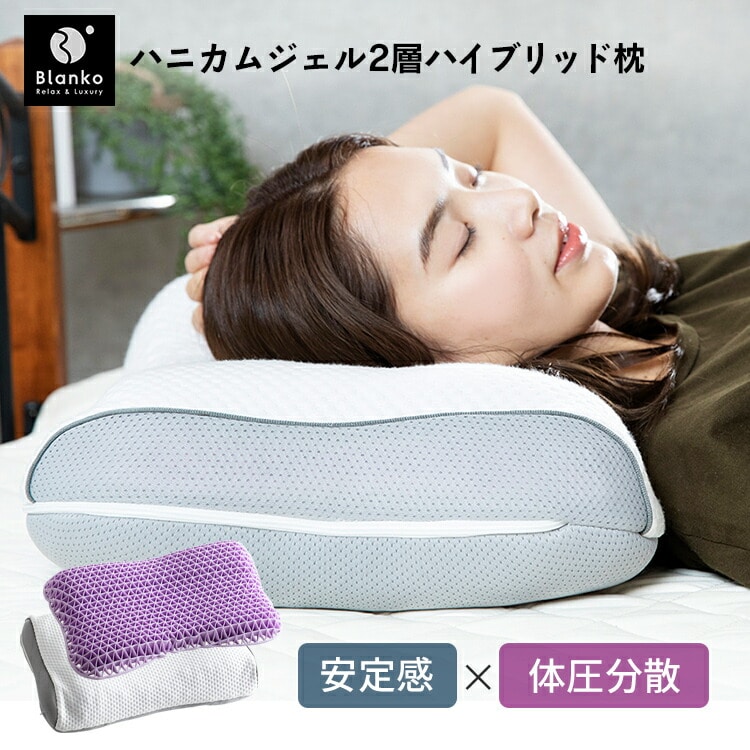 ハニカムジェル構造のエラストマー素材を二層構造の上部の中材に使用した枕です。
