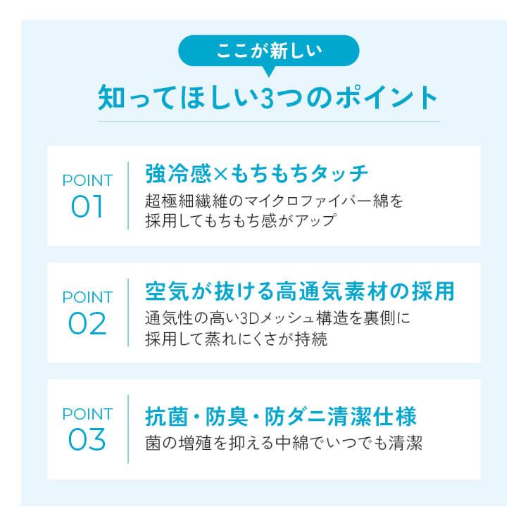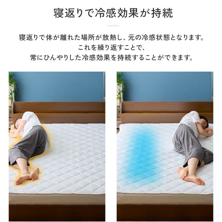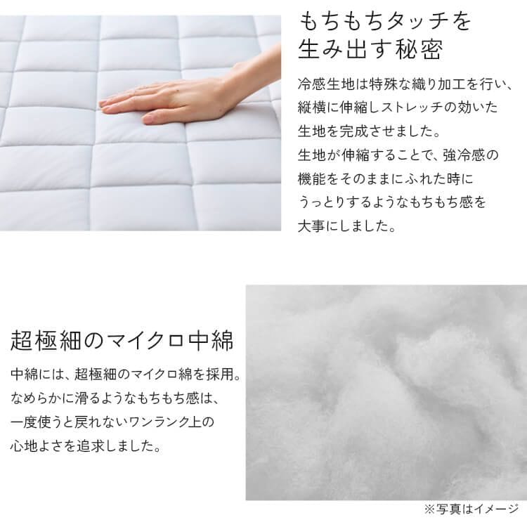 従来の商品に比べ、ミント加工を施しているのでひんやり感がグレードアップ、肌に触れると爽やかで冷たい素材の敷きパッドです。